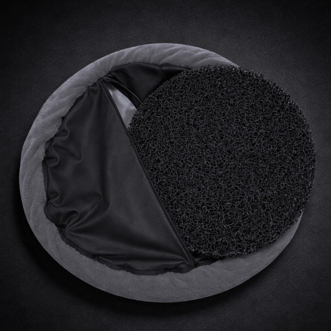 通気性に優れた炭配合素材を使用し、湿気やニオイがこもりにくく、清潔な環境を保ちます。丸洗い可能で乾きも早く、お手入れも簡単です。安定感のある設計で警戒心の強いペットでも安心して使用でき、体にやさしくフィットして体圧を分散するため、シニアや長時間横になるペットにも適しています。