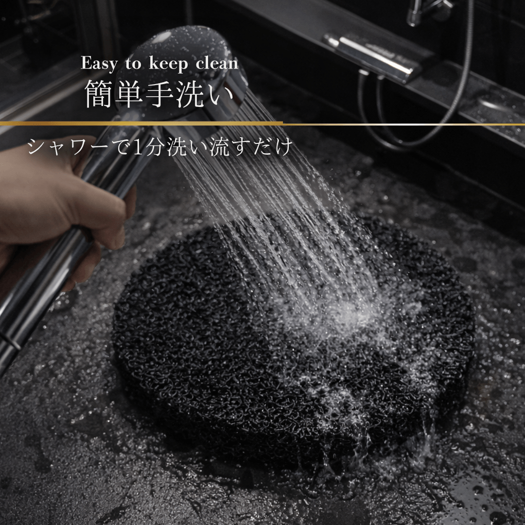 汚れが気になる際や、定期的なお洗濯の際にはシャワーで1分程度そのまま流して頂くだけでお掃除が完了出来ます。 洗濯機はご不要です。