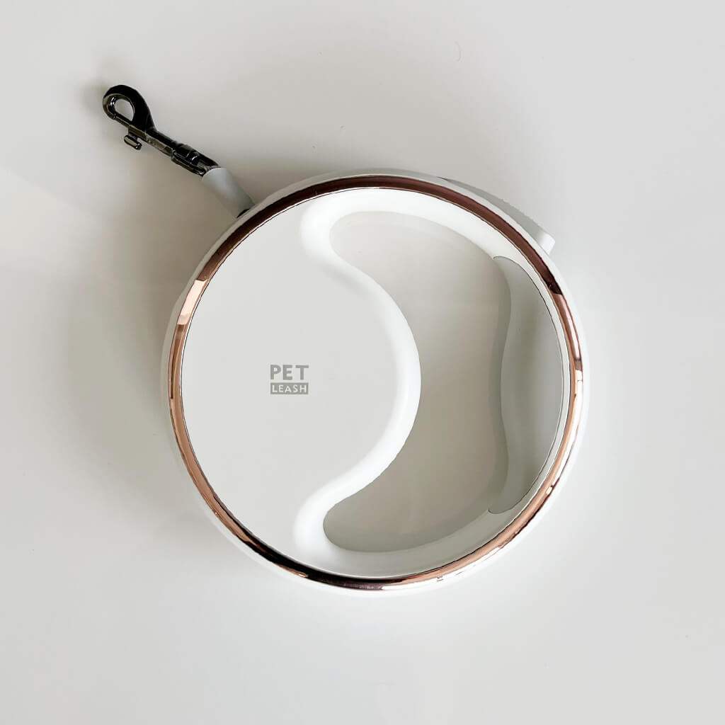 この「Long Lead(USB充電式LEDライト付きロングリード)」は、夜のお散歩や暗い場所での安全性を考えて作られたアイテムです。USB充電式LEDライトが内蔵されており、暗がりでもリード部分が光って視認性を高めます。カラーは「WHITE×PINK GOLD」「BLACK×GRAY」などスタイリッシュな色展開で、ファッション性も◎。ワンちゃん・ネコちゃんの動きに応じてしなやかに対応する丈夫なリード素材で、噛みや引っ張りにも強く設計されています。手軽に充電できるので、電池交換の手間も不要。暗い時間帯のお散歩や早朝・夜の移動時に、「見える」安心をプラスできるロングリードです。
