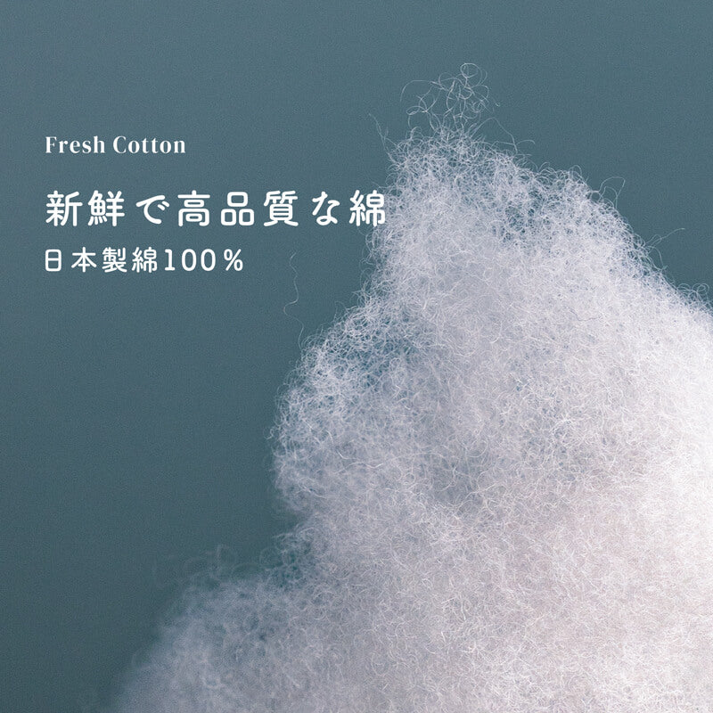 上質な撥水カバーが、水や汚れを弾く。お手入れしやすく、いつでも清潔で気持ちいい寝心地をキープ。中材には、日本製の新鮮な綿を贅沢に使用。ふんわりと包み込む柔らかさと、しっかり支える弾力でへたりにくく、長く快適な使い心地が続きます。